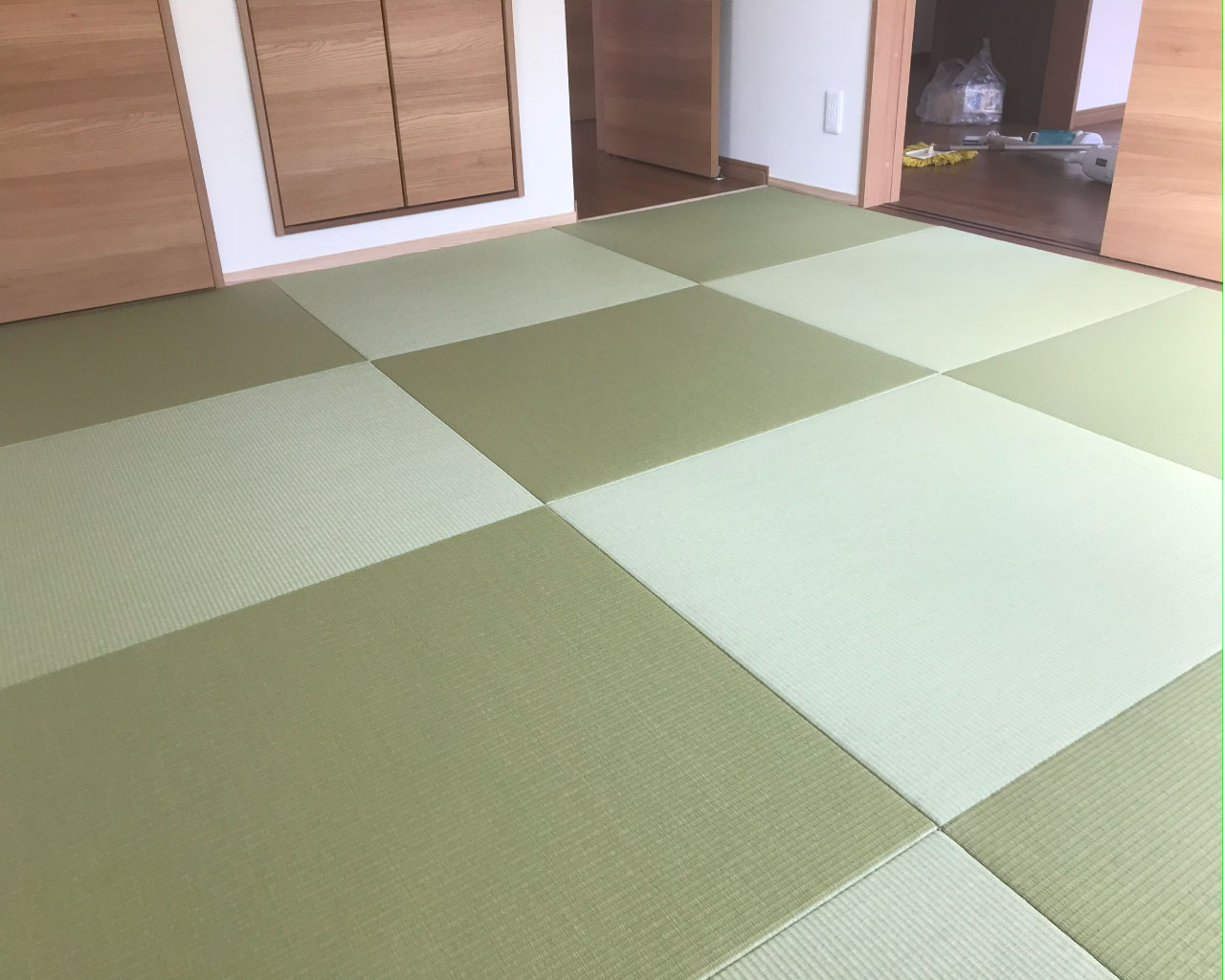 桂川町、飯塚市、嘉麻市、田川市での縁無し畳(琉球畳)の新調、表替えの納品例をご覧ください。