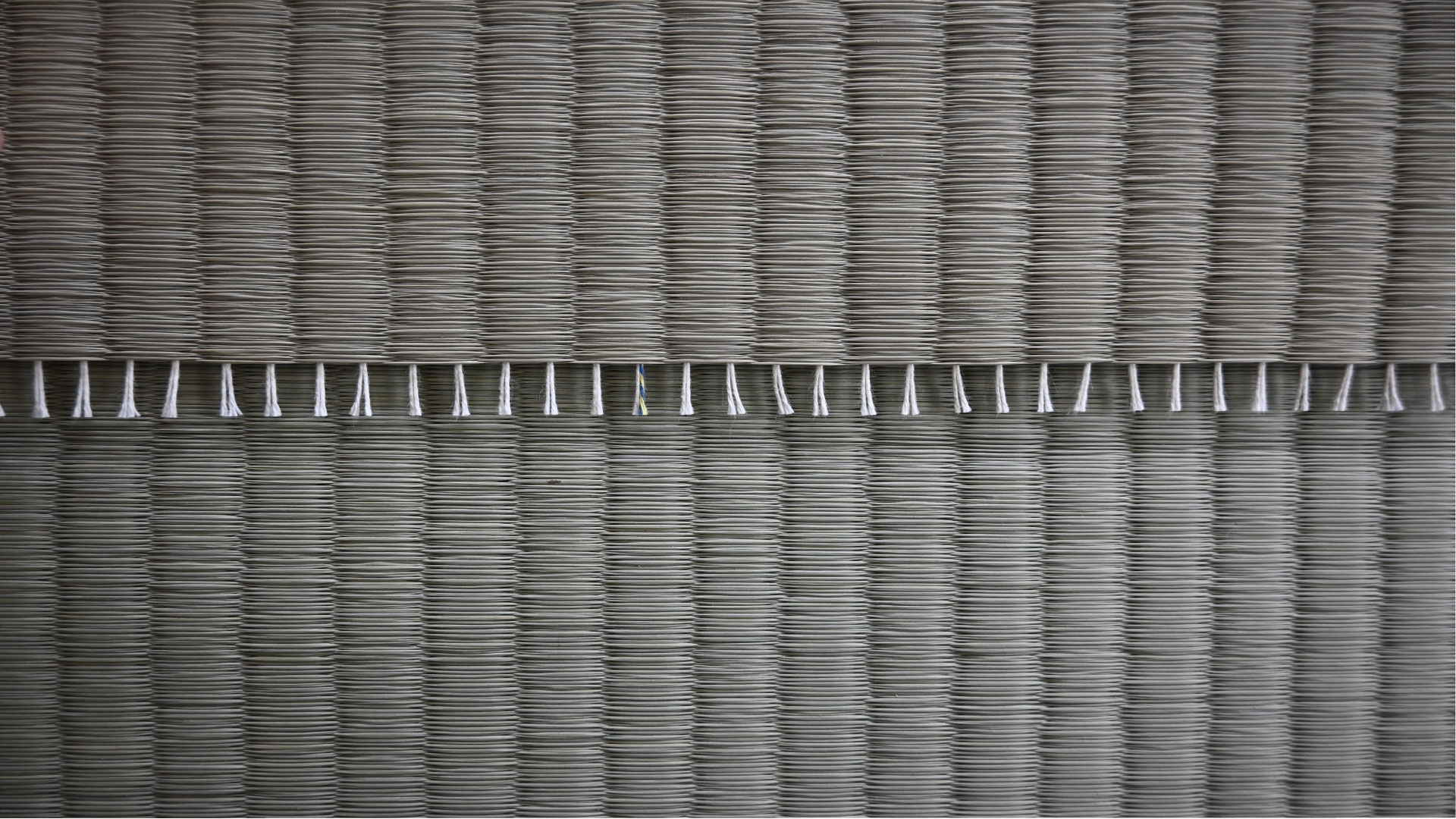 この糸の仕様は最上級ランクの畳表に使用され、選別された良質ない草をぎっしり詰めて織り上げることから、い草の本数が多くて厚みや耐久性に優れ、畳の目の山が盛り上がり、とても美しい畳表になります。